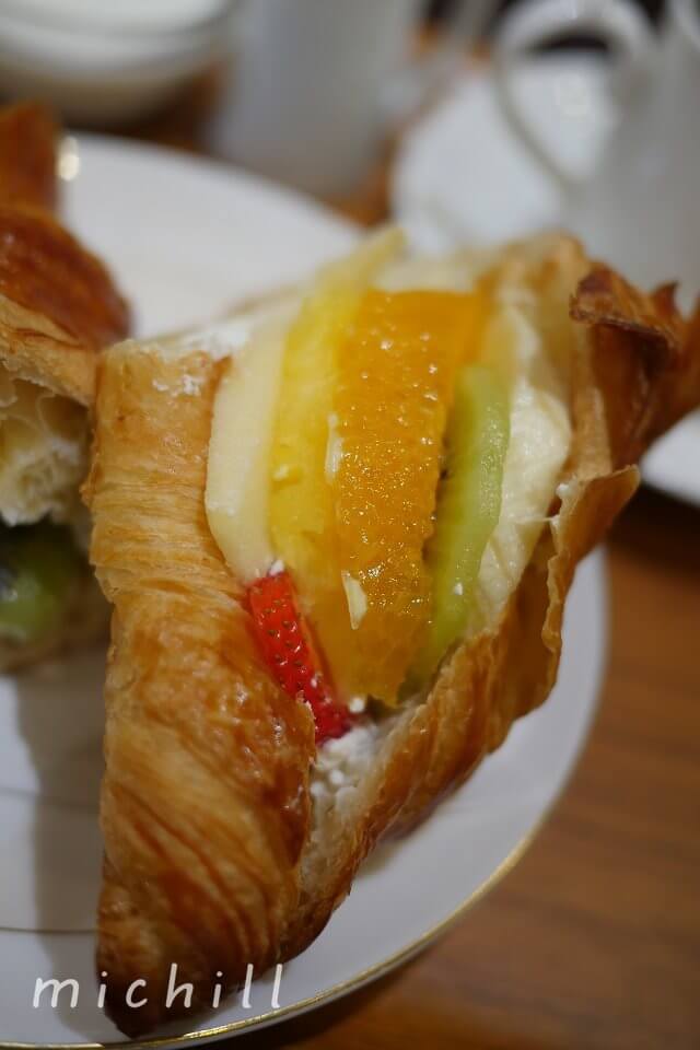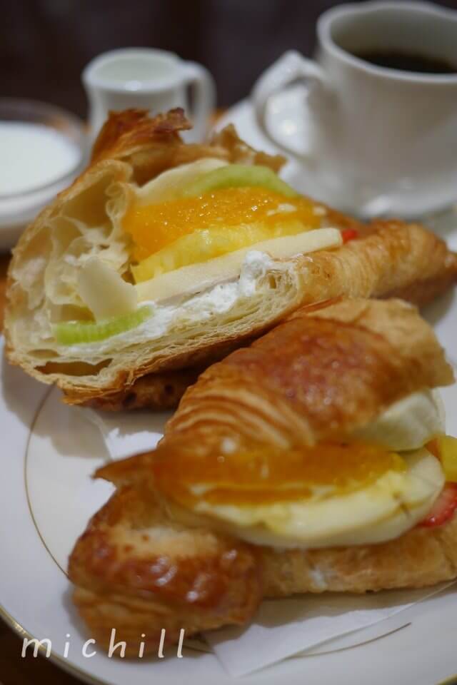 クロワッサンだけでも美味しいのに、そこにフレッシュなフルーツをコラボさせるなんて。まさに、スイーツ大好き女子のためにあるメニューと言えますね。