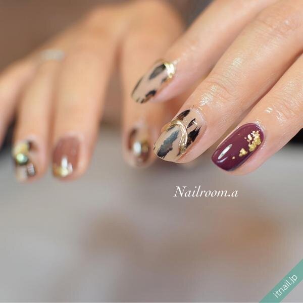 スモーキーなベージュをベースに、アニマル柄の囲みネイルを入れたデザインは大人にぴったり♡囲み部分を細くするほど、さり気なく取り入れることができるので、全体の仕上がりや好みに合わせて変えてみてくださいね。