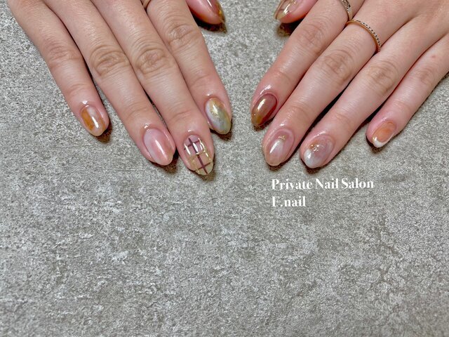 ニュアンスネイルに合わせたチェック柄がガーリー過ぎないのがポイント。可愛いネイルがちょっと苦手という方にも、このさりげなさが丁度よく感じると思います。