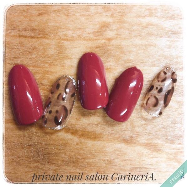 大人女子の皆様には、クリアブラウンをベースに、レオパード柄をアートしたデザインもおすすめです。ダークカラーを爪全体に使うと重くなってしまいがちですが、透明感のあるクリアブラウンならば、シックで上品なデザインに仕上げられます。