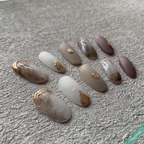 乳白色多めの優しい雰囲気のブラウンマーブルネイル♡