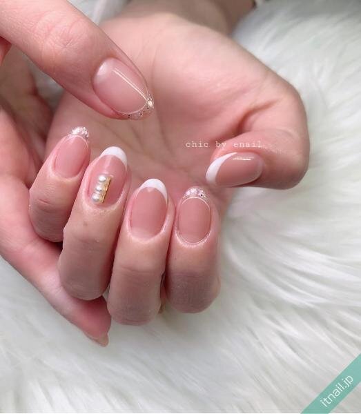 正統派なデザインが似合う骨格ストレートさんは、上品なネイルがおすすめ♡定番のフレンチネイルに、パールを添えるだけできちんと感が出るので、オフィスネイルにもぴったりです。