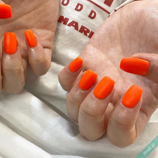 元気いっぱいのネイルにしたいなら、ネオンオレンジできまりです。