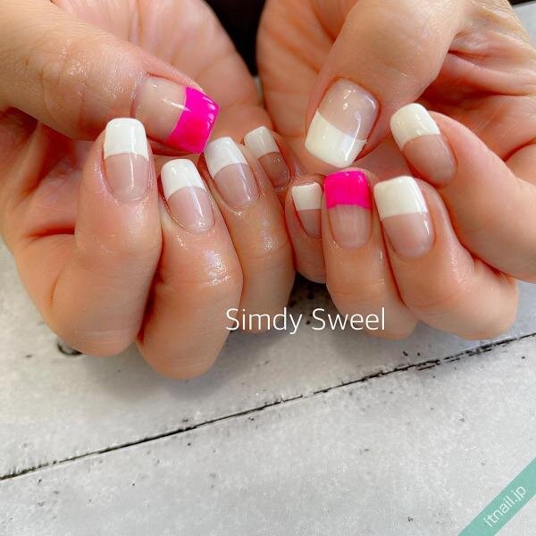 ママにとっては、「毎日忙しくて、気が付いたら1週間が終わってた…」ということは日常茶飯事です。爪が伸びて根元が目立ってくると、「またネイルチェンジしなきゃ…」と憂鬱になりますよね。そんなときは、フレンチネイルがおすすめです。ショッキングピンクとホワイトでフレンチを描けば、簡単にトレンドネイルのできあがりです。もし家にジェルネイルのキットがあるなら、より長持ちしますよ。