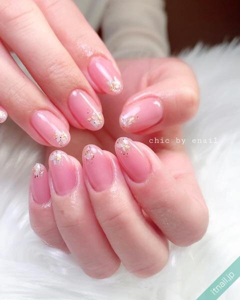 ピンク系のネイルでフェミニンな指先にするのも人気♪先端のシェルも詰め込みすぎないように意識しながら、少なめにすることがポイントです。小さめのシェルを使って、デート向けのネイルにしてみて!