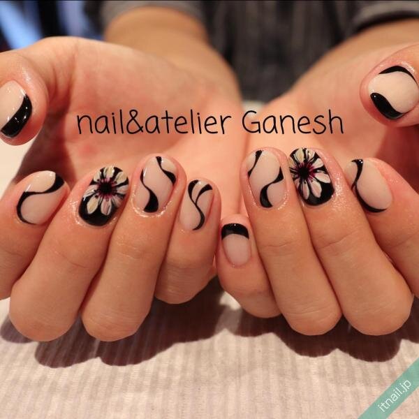 ベージュでカラーリングしたネイルにブラックのフラワーモチーフをいくつかアートしたり、爪からはみ出るほど大きなブラックフラワーを描いたり。透明感のあるブラックで、シアーな色味のフラワーモチーフを描くデザインも素敵ですよね。