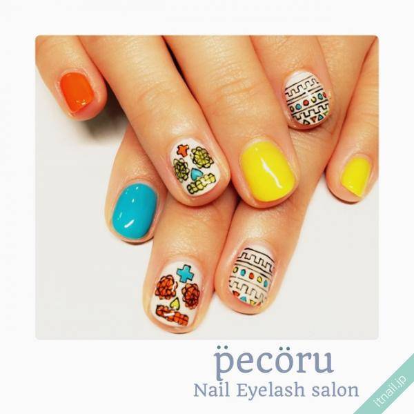そんなメキシカンな雰囲気を、そのままネイルに取り入れてみてはいかがでしょうか。ブロックをいくつも重ねてお好みの模様をアートしたり、爪5本を異なる色でカラーリングしてお好みの爪数本にメキシカンな模様をアートしたり。