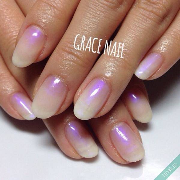 5本すべての爪を乳白色の偏光カラーネイルにしてもいいですし、乳白色で色味を統一しつつ、シェルを埋め込んだネイルやホログラムを埋め込んだネイル、チークネイル、といったデザインと組み合わせてみるのもおすすめです。