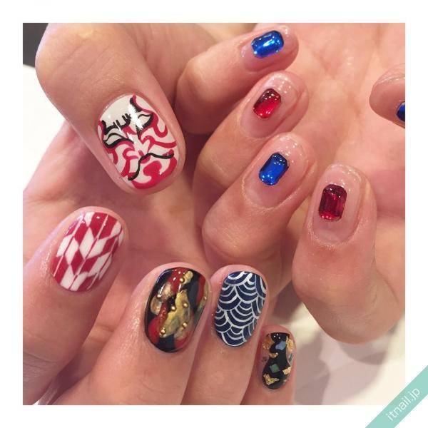 みなさんご存知の歌舞伎。重要無形文化財にも指定されていますよね。歌舞伎といえば、顔を白く塗り赤で線を描いた独特の化粧「隈取(くまどり)」を思い浮かべる人も多いのではないでしょうか?歌舞伎をネイルにするときは、隈取をモチーフにするとわかりやすいですよ。