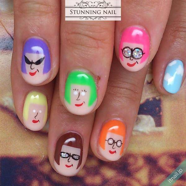 あえて同じ表情をアートして髪の毛の色だけを変えてもいいですし、怒っている顔、笑っている顔、メガネをかけている顔、というように表情やプラスするファッションアイテムを変えたデザインも素敵ですよ!