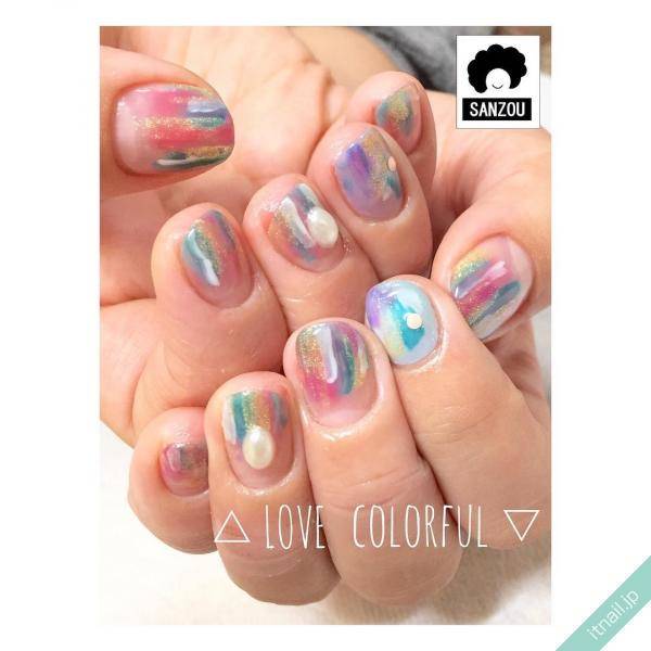 そんなニュアンスネイルですが、好きな色をたくさん使ってカラフルに仕上げてみるのはいかがでしょうか。ブルー、オレンジ、イエロー、ピンク、といった色を組み合わせて、思い思いのアートを楽しんでください。
