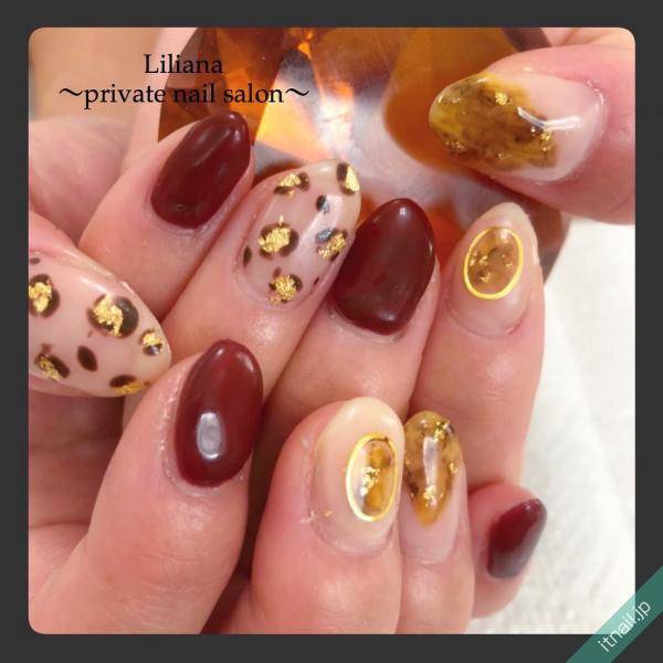 クリアベースの爪にダークブラウンのアニマル柄をアートしたり、これにラメや金箔、ミラーアートをプラスしてみたり。爪5本すべてにアニマル柄をアートしてカジュアルなデザインに仕上げてもいいですし、爪数本にアニマル柄を、他の爪にはお好みの色でニュアンスアートをプラスするデザインに仕上げてもいいでしょう。