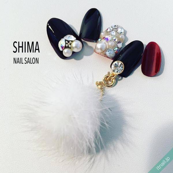 ファーのチャームはかわいいですが、主婦やママさんの中には「水仕事のときに濡れちゃいそう」と思う人もいますよね。そんなときはネイルチップに頼りましょう。ブラックに塗ったネイルチップの根元にファーのチャームを取り付け、お出かけのときだけチップを装着するようにすれば便利です。ほかの爪もストーンの埋め尽くしをして、華やかにきめましょう。