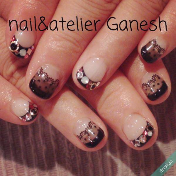 レース模様の隙間からうっすら黒く色づいた自爪が透けて見えるデザインは、大人の女性が身に纏うセクシーなランジェリーのようで、本当に素敵ですよね。