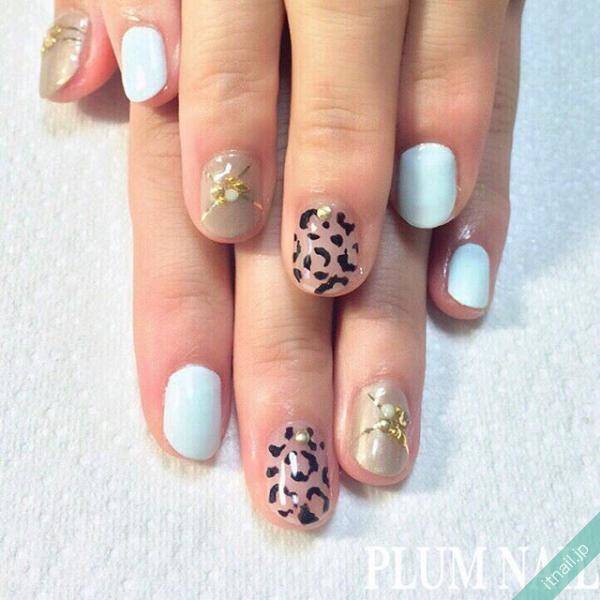 ベースジェルを塗っただけのクリアネイルにレオパード柄をアートするだけのシンプルネイルですが、重くなりすぎず上品なデザインに仕上げられます。