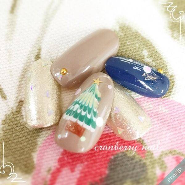 クリスマスツリーをネイルに取り入れて、クリスマスネイルを楽しみましょう。