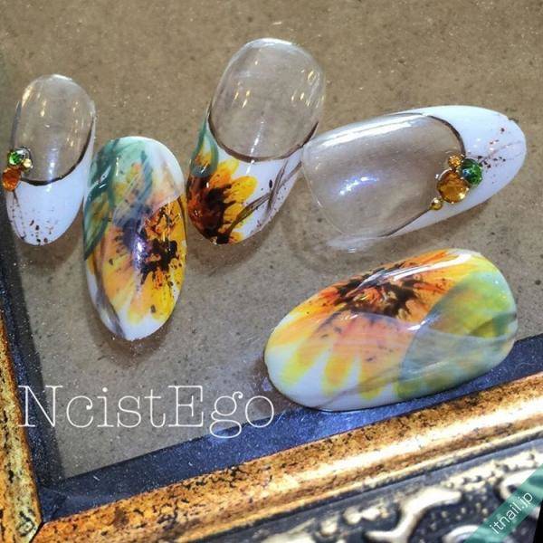 フラワーネイルが大好きなあなたは必見です。今回おすすめするフラワーアートは「ひまわり」です。少し気が早い?しかし今年は暖冬の影響で、全体的に開花が早まっているようです。先取りするなら今かも!?そこで真夏はもちろん、今から取り入れて長い目で楽しむのも良いですね!この春に大人気だったミモザネイル。その流れからまだまだイエローとグリーンの人気は続く模様。ビタミンカラーの元気なイメージのひまわりには、気分をリフレッシュする効果も!「なんとなく元気がでないなあ」というときこそ試してみてくださいね。そこで真夏はもちろん、今から取り入れて長ーく楽しむのもおすすめです。中でも大人に似合うエレガントなサンフラワーネイルを集めてみました。フットにもそのまま使えるデザインばかり。ぜひ参考にしてくださいね。