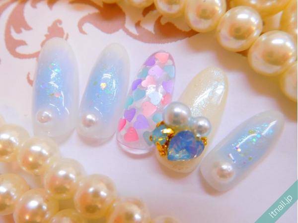 ポイントで、ホワイトやホワイトオパールのパーツを使ったり、ベースにラメやホログラムをプラスしたり、といったアレンジもおすすめです。