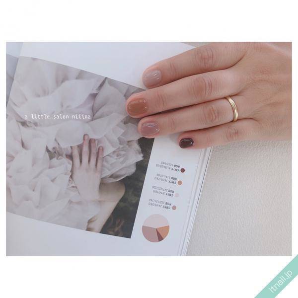 ベースとなるカラーはすべて正統派なベージュやグレージュを使用しています。小指に合わせるカラーで雰囲気を変えて楽しみましょう。ではどんなカラーが効果的なのか見てみましょう!