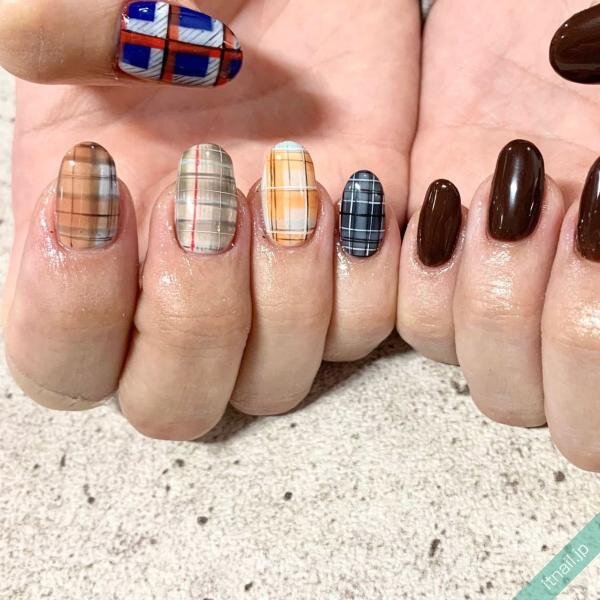 お気に入りのチェック柄を見つけて、秋らしい指先にデザインしましょう。