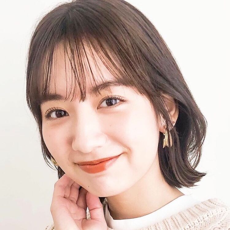 若い女性に大人気のひし形ボブに、ナチュラルな流し前髪を合わせた髪型です。