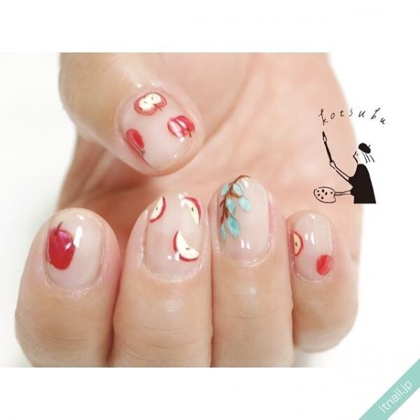 例えば、爪にリンゴのモチーフをいくつかアートして、そのうちの一つはリンゴの断面をアートするデザインはいかがでしょうか。爪全体にリンゴの断面をアートする、大胆なデザインもお洒落ですよね。