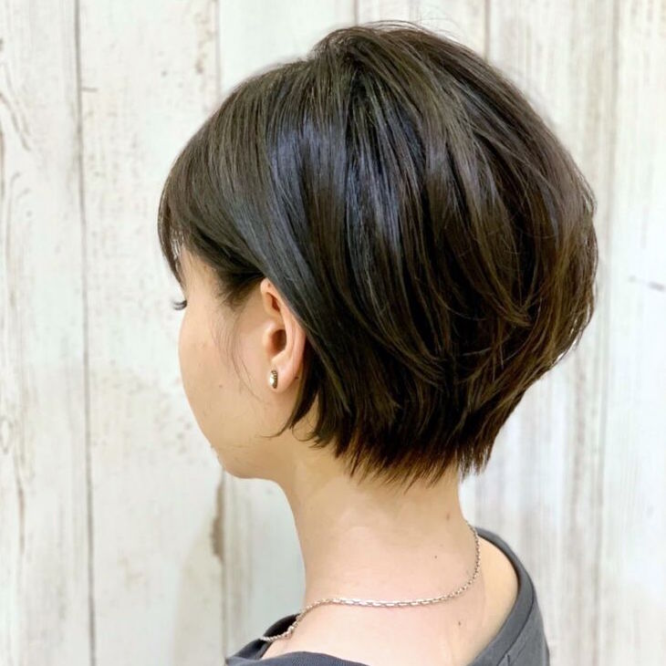 長めのバングがアクセントになる前下がりのマッシュショートは、より動きが出やすいスタイルです。