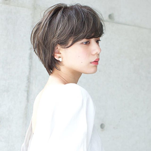 シンプルなショートヘアも、明るめのグレージュにすれば一気に華やかな雰囲気になるのでおすすめです。