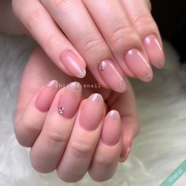 ピンク感のあるベージュに、さりげないグリッターが上品なデザインです。