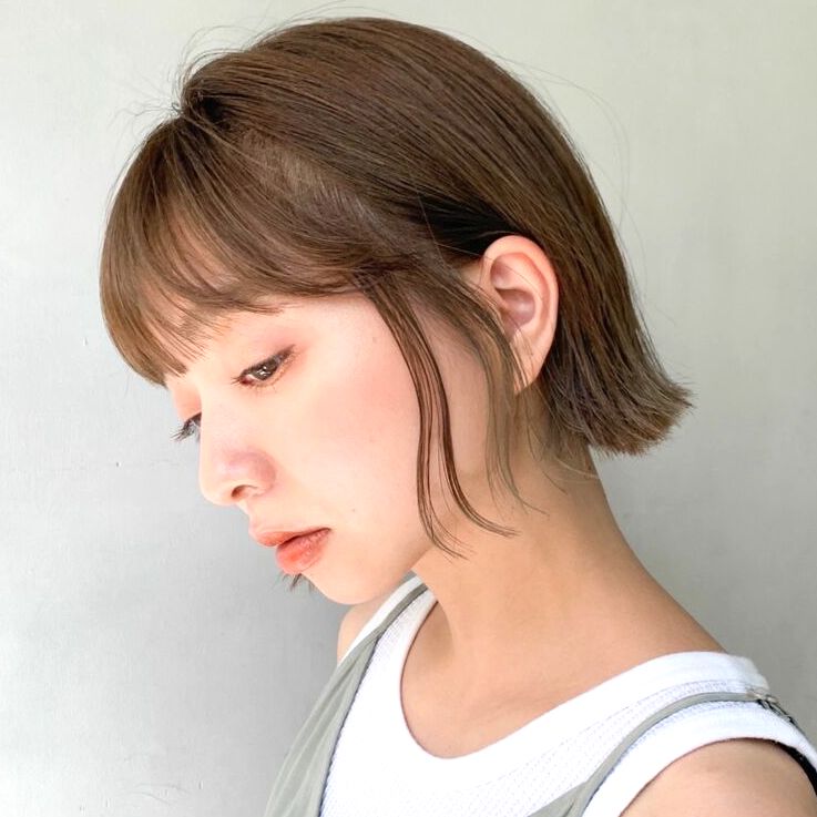 ぷつっとミニボブはスタイリング剤でしっかりと潤いを持たせると、よりトレンド感があり垢抜けたヘアスタイルになります。