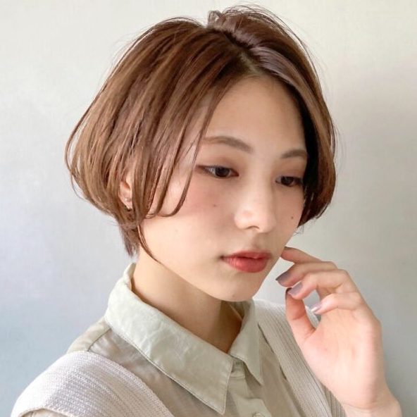 毛先にパーマを掛けることで、全体的に丸みのある人気のレディース向けマッシュショートができます。