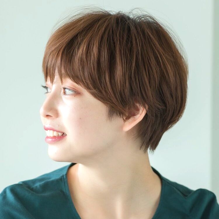 ブラウン系のヘアカラーにすることでやわらかさも増して、大人っぽく可愛い雰囲気のベリーショートになります。