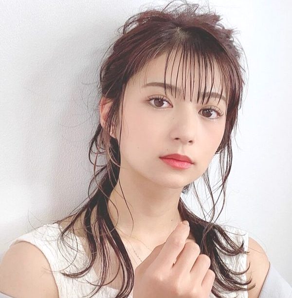 前髪を下ろした大人可愛いスタイリングが人気です。こちらはヘアワックスをもみこんで、上部分をくるりんぱ。