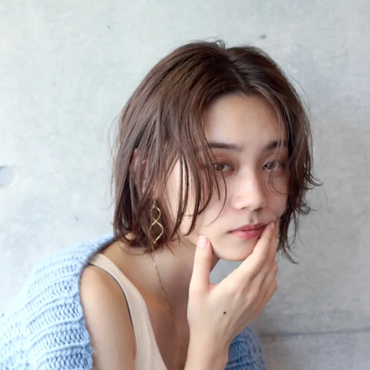 長さのあるショートカットウルフは丸顔さんにもぴったりですね。襟足に動きをつければ、かわいらしい印象も叶います。