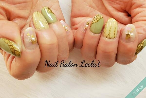 ふんわりとやわらかいその色合いは肌なじみが良いのが特徴。上品なグリーンカラーのネイルを楽しむことができるでしょう。