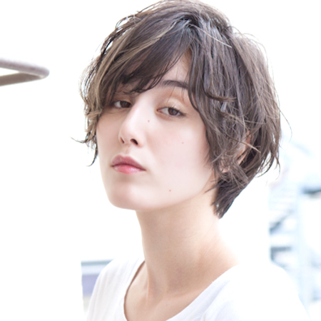 外国人風な透明感のある髪色で華やかなショートヘアとなり、大人女性に人気。毛先に大きめのコスメパーマをかけるのが軽さを出せておすすめです。