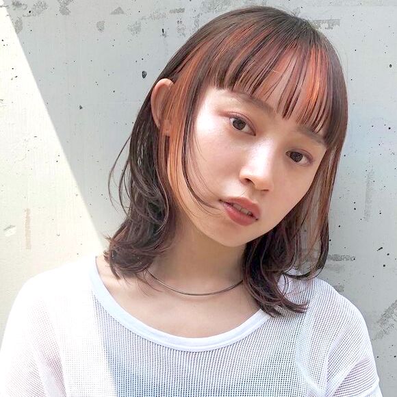 暗めのベースにオレンジのフェイスフレーミングが映えるヘアスタイル。
