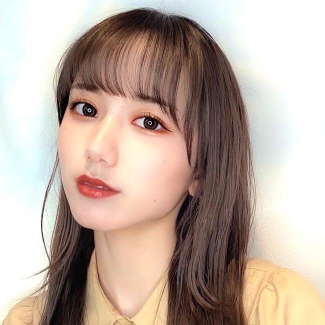 こちらのヘアスタイルはリップラインで前髪をぷつっとカットされており、重ための前髪が印象的ですね。