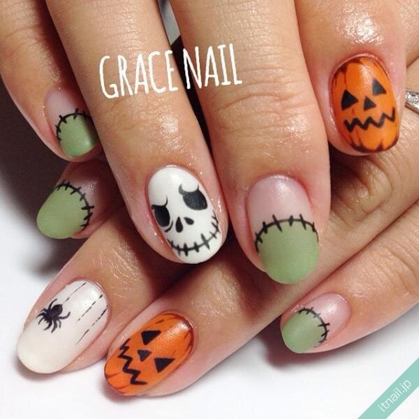 ポップでキュートなハロウィンネイルをお探しなら、こちらのデザインがおすすめです♪
