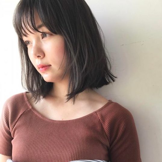 少し明るめのヘアカラーにしたり、前髪にくるんと動きをつけたりして大人女性にも似合うカジュアルな印象になっていますね。