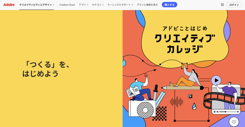 「アドビことはじめ クリエイティブカレッジ」は、Adobeが提供する公式の学習プログラムです。PhotoshopやIllustratorなど、Webデザインに欠かせないツールの基本操作を動画で学べます。プロのクリエイターが講師を務めており、実務を意識した解説が受けられる点が特徴です。