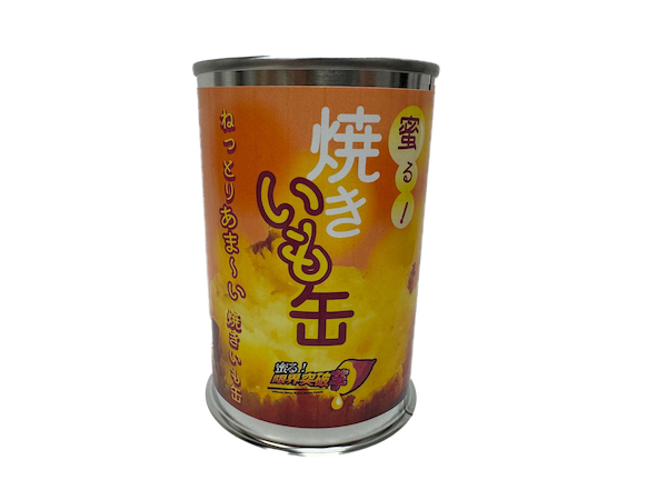 お土産物にちょうど良い「焼きいも缶(スチール4号)」は、要望によってノベルティなどを同梱できる。