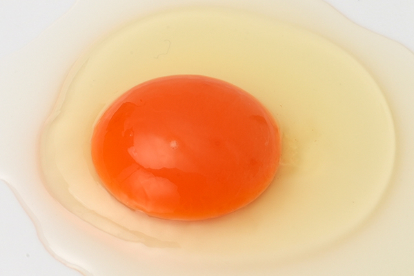同商品は、ニワトリたちの感受性を尊重し、自由に飛び上がり、動き回ることのできる環境で生まれた大切な“おひさま色”の平飼い卵の卵黄を使用。卵黄はオレンジ色をしている。