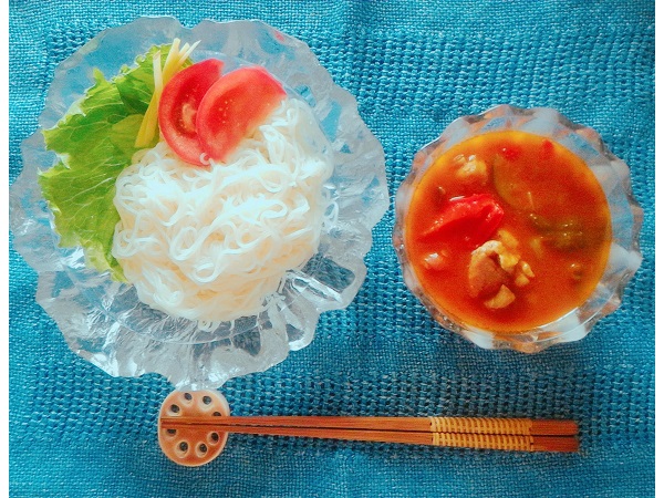 つけ麺感覚で食べる「冷やしそうめん&トマトと野菜のチキンカレー」といった夏におススメなメニューも掲載。スパイスのクミンには食欲増進効果があるため、食欲のない夏にはまさにぴったりなのだそう。