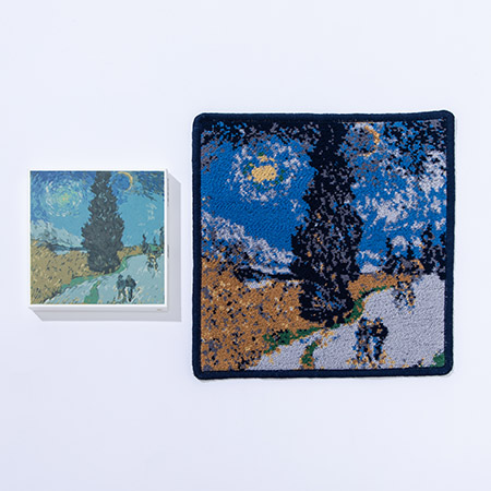 同タオルは、ゴッホの特徴でもある厚く立ち上がる絵の具の筆あとを感じるような表現を「シェニール織」で実現。