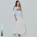 トレンドのサテンスカートとあわせて甘すぎないスカートスタイルに。