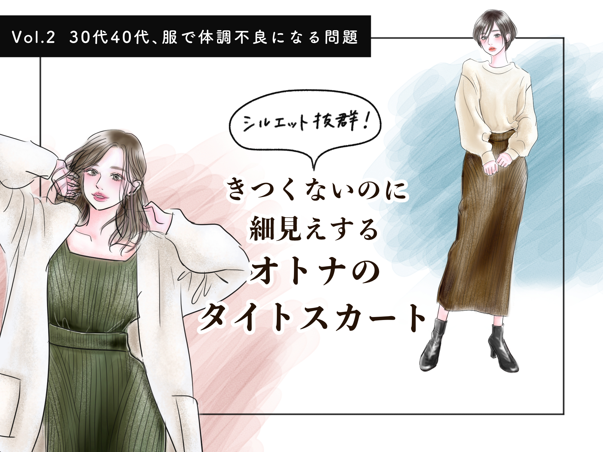 タイトスカートはトレンドアイテムでもあるし、脚を出さなくていいので防寒にもなるし、オトナとしては穿き続けたい…ということで、なんとかアラフォーが機嫌よく着られるタイトスカートを味方につけていきたい!と切望する私。