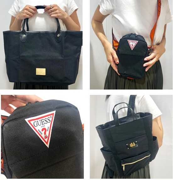 オレンジのロゴテープや刺繍の三角ロゴなど細部まで、「ゲス」の魅力がいっぱいです。ユニセックスで持てるブランドとなっています。