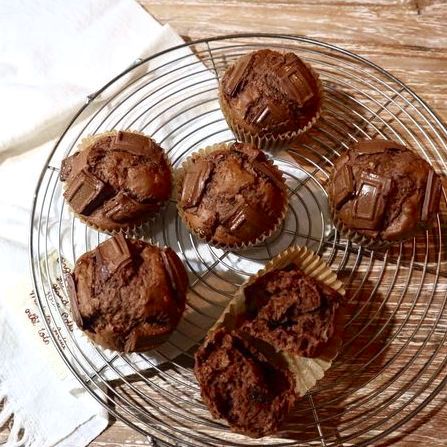 Wチョコバナナマフィンは、ホットケーキミックスにココアを混ぜ込んでいるのでホットケーキミックスの香りがしません。