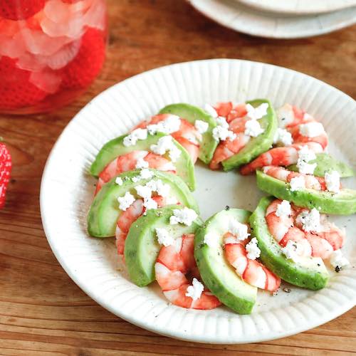 こちらはエビとアボカドとカッテージチーズで作るおしゃれな前菜風のレシピ。
